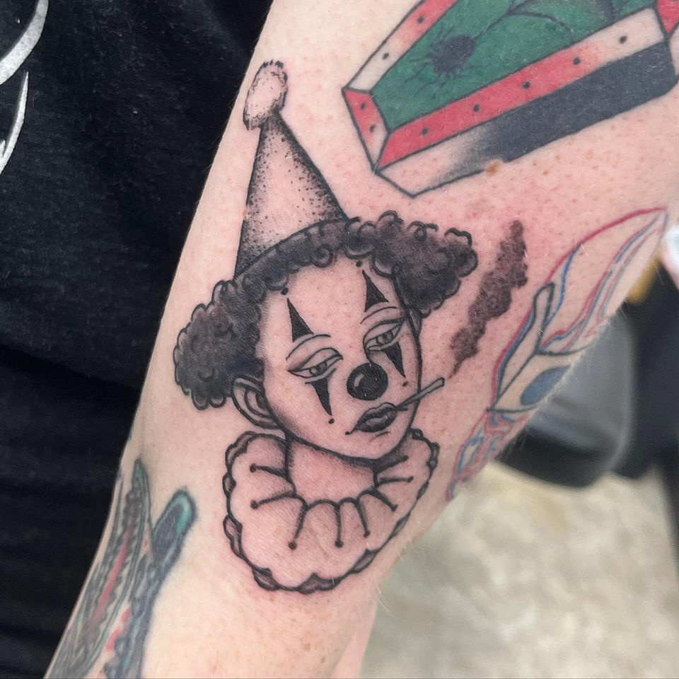 I was born and raised in a little city on Lake Michigan. I moved to Madison on my own at eighteen. Growing up I always was in trouble for doing art when I shouldn’t have been. Whether at school, at home or at work, I was drawing, and I wasn’t supposed to be. I’m thrilled to have been given the opportunity to do what I love in a professional setting, surrounded by good people here at Blue Lotus. I have an odd/surreal art style and am always drawing all sorts of semi-realistic funky faces. When I’m not drawing I enjoy being outdoors/camping, people watching, thrifting, eating, searching for my favorite movie or being with friends. I am open to many different kinds of tattoo styles, with interest in illustrative, black and grey or color.